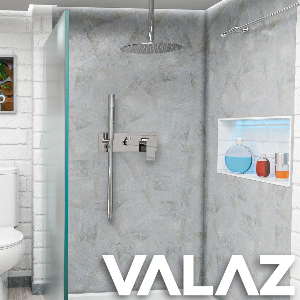 VALAZ Ducha empotrada monomando redonda con embellecedor rectangular a techo cromado serie Sil – 30cm