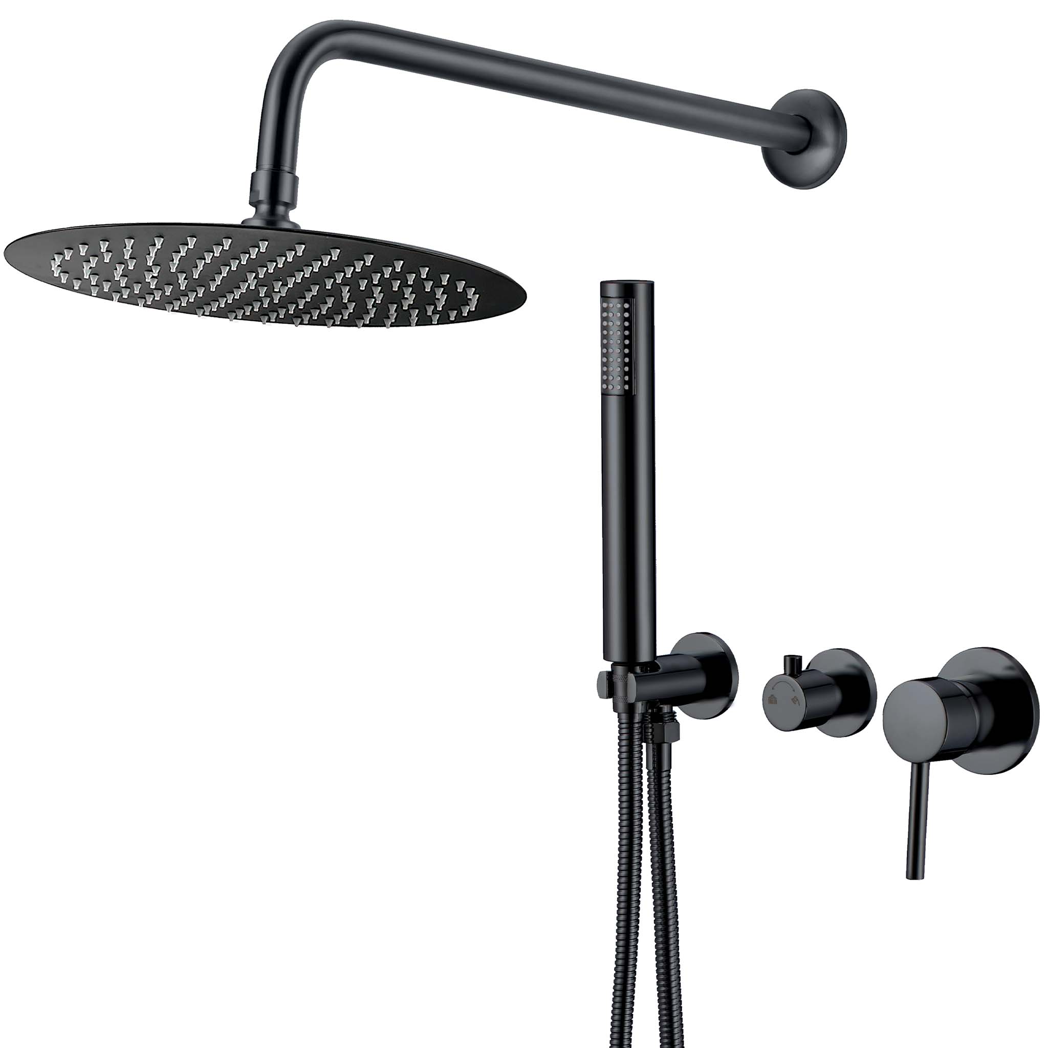 VALAZ Ducha empotrada monomando redondo a pared negro mate – Serie Guadiana – 20cm