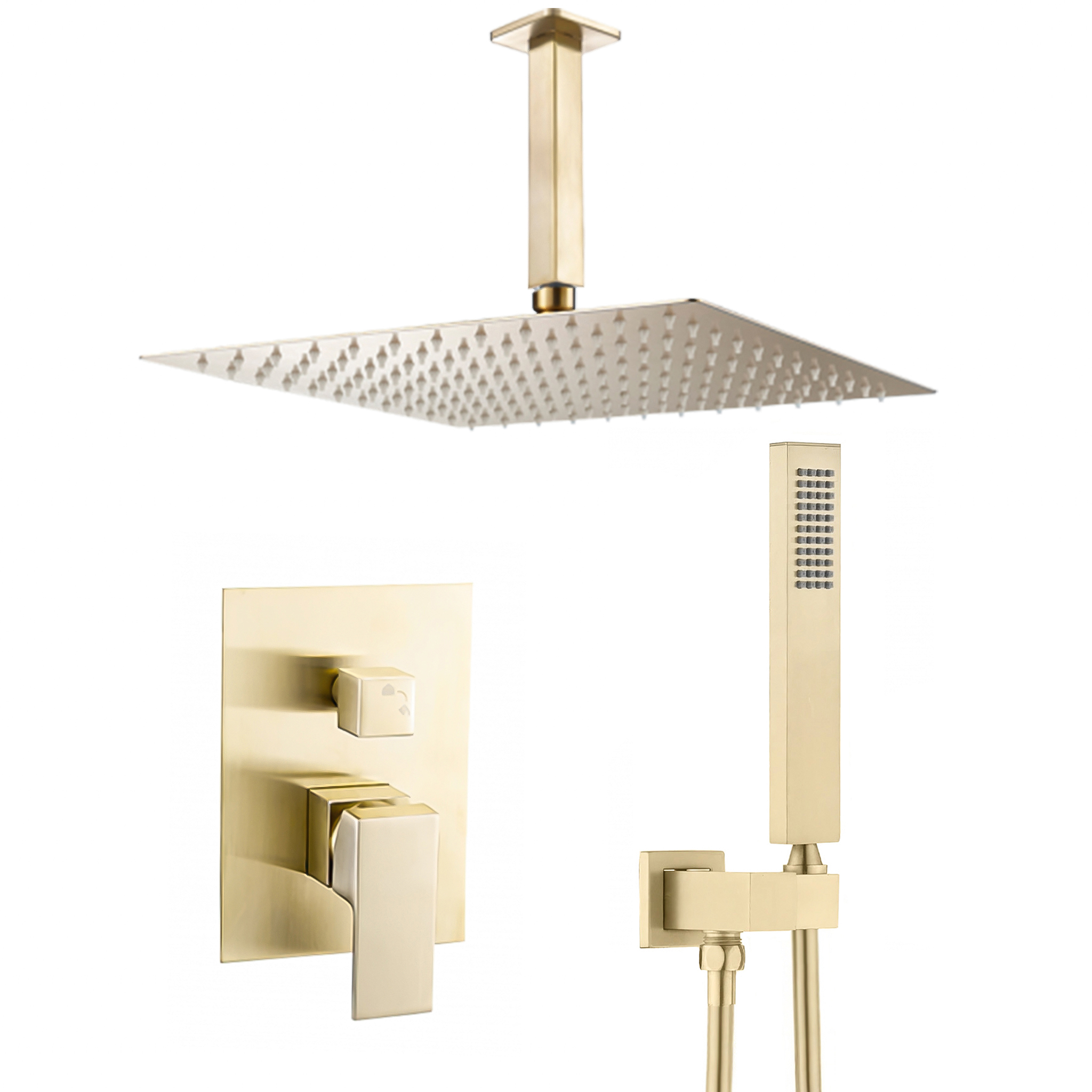 VALAZ Ducha empotrada monomando a techo cuadrada dorado cepillado – Serie Tajo – 30cm