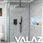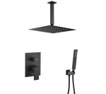 VALAZ Ducha empotrada monomando a techo cuadrada negro mate – Serie Tajo – 20cm