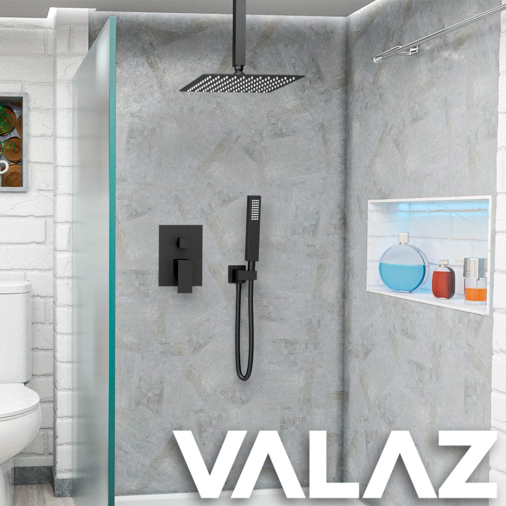Sé el primero en valorar “VALAZ Ducha empotrada monomando a techo cuadrada negro mate – Serie Tajo – 20cm” Cancelar la respuesta