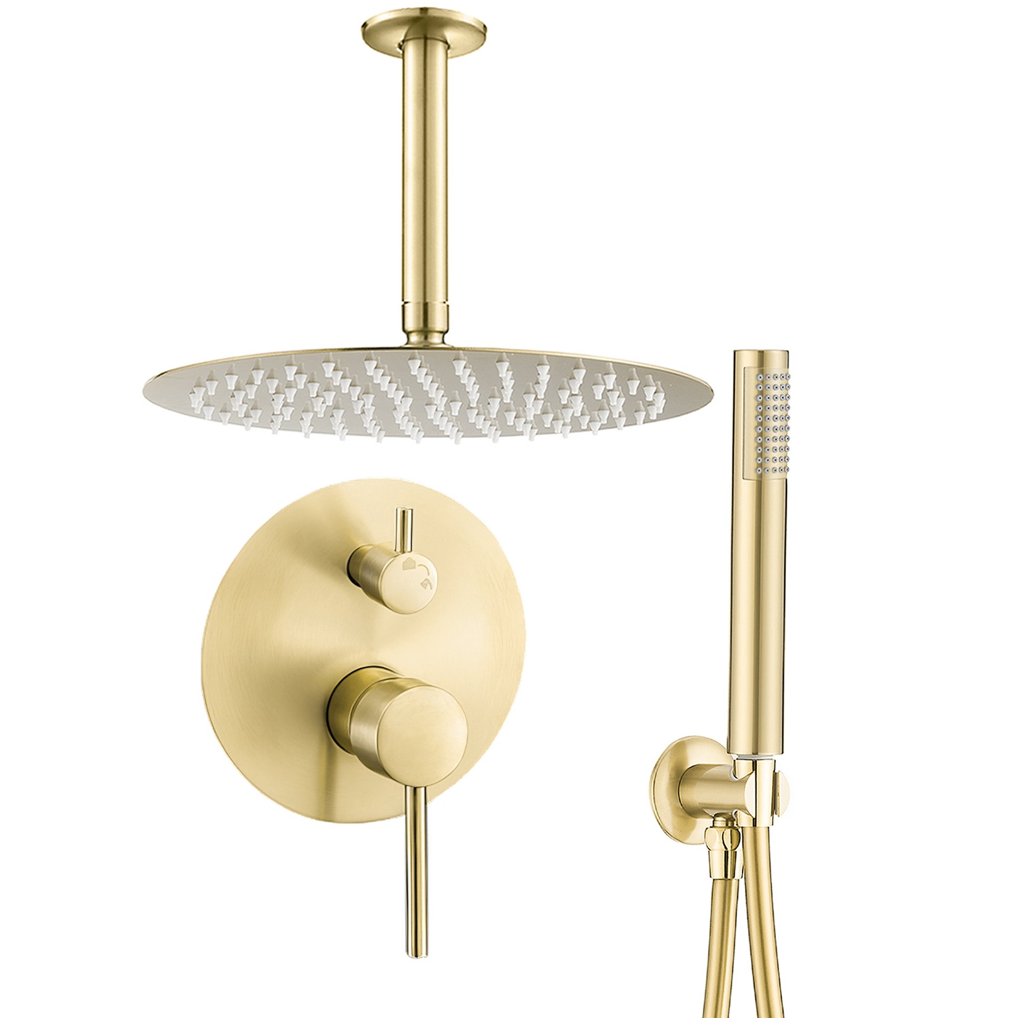 VALAZ Ducha empotrada monomando a techo redonda dorado cepillado – Serie Jucar – 20cm