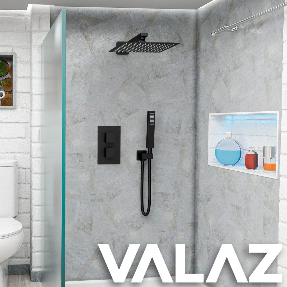 Sé el primero en valorar “VALAZ Ducha empotrada termostática a pared cuadrada negro mate – Serie tajo – 20cm” Cancelar la respuesta