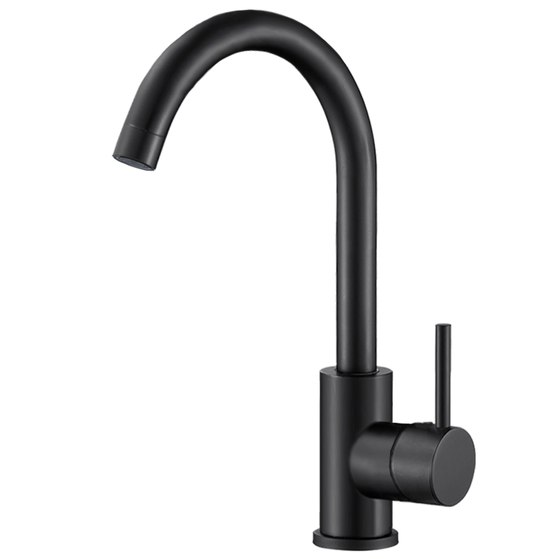 VALAZ Grifo de lavabo monomando con caño corto y giratorio en negro mate - Serie Arkansas