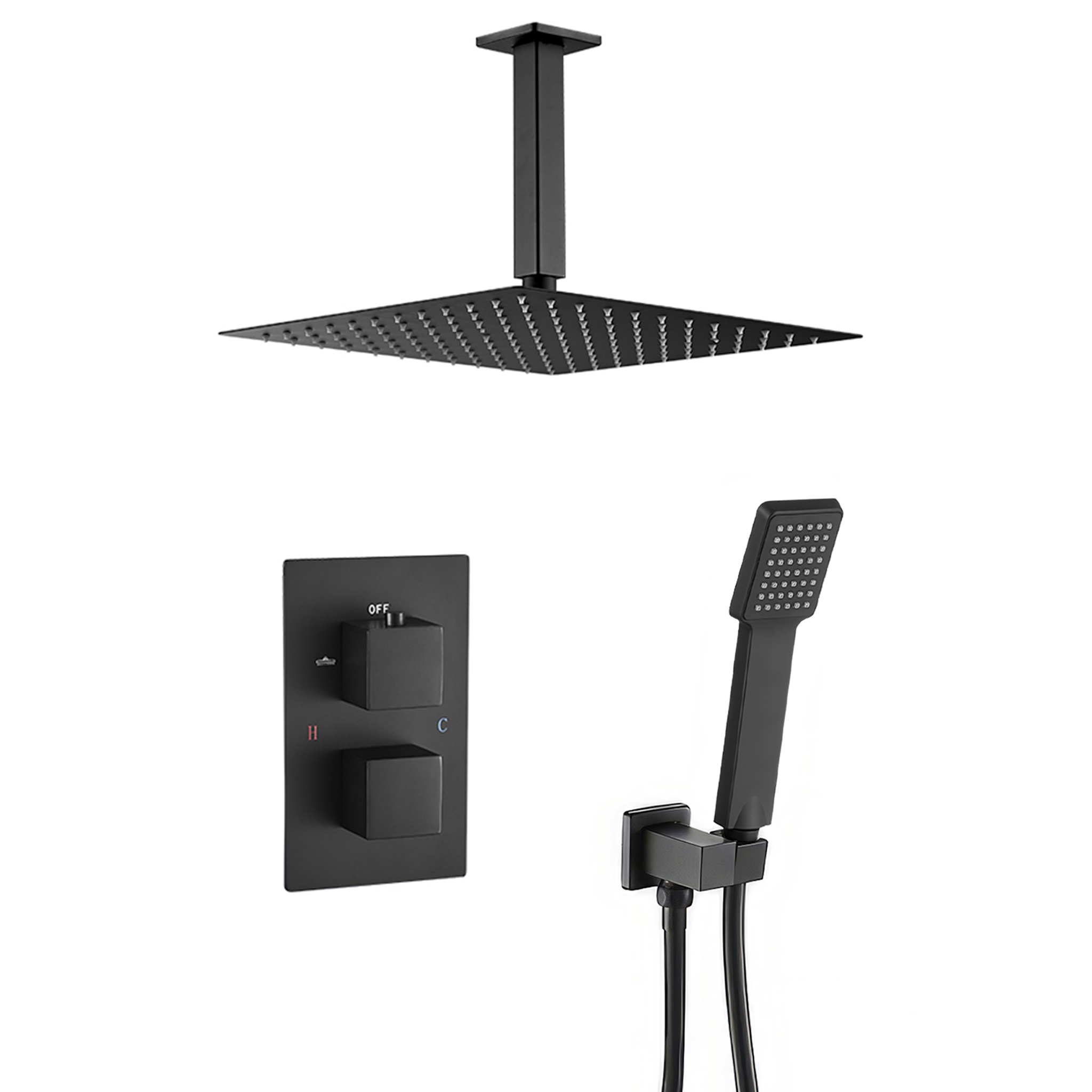 VALAZ Ducha empotrada termostática techo cuadrada negro mate – Serie Eresma – 20cm