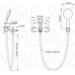 Incluye: cuerpo de la grifería de latón, caño bañera, cartucho cerámico, flexo de acero inoxidable y alcachofa de mano de ABS