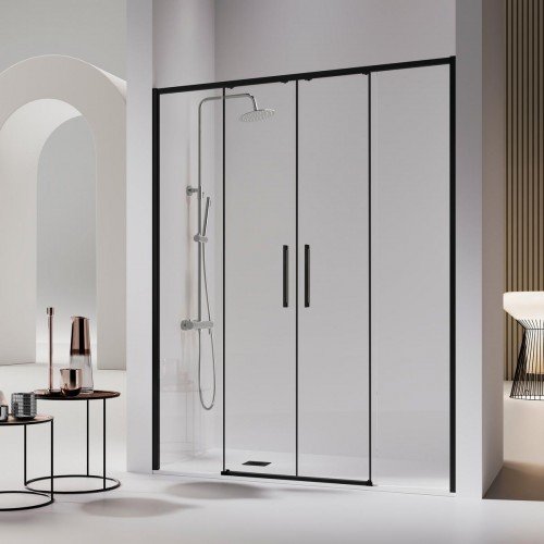 Mampara frontal 2 fijos y 2 correderas en negro mate Delta 371,85€ - 420,60€Rango de precios: desde 371,85€ hasta 420,60€