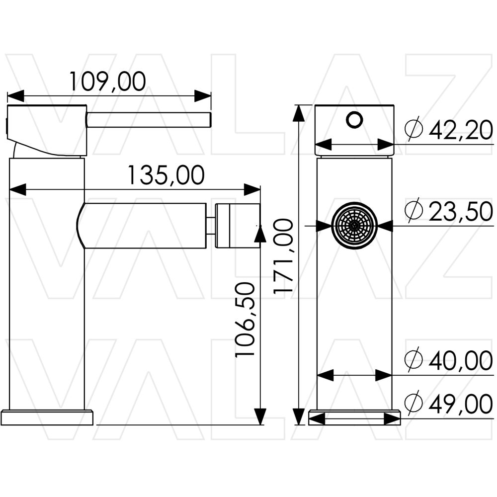 VALAZ Grifo de bidé con apertura en agua fría monomando caño recto oro mate con protección PVD – Serie Nansa