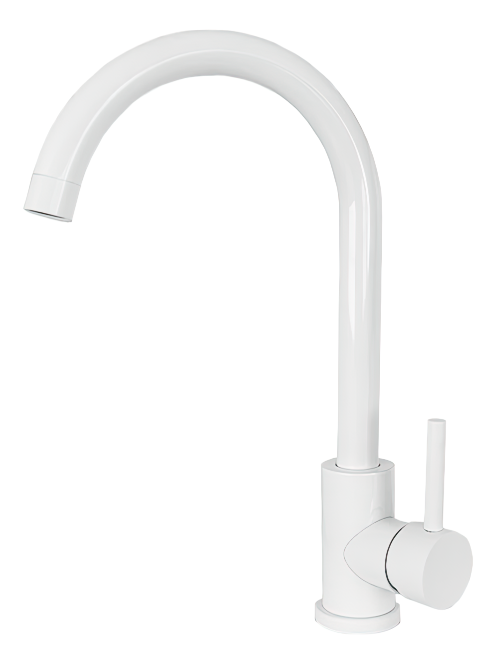 VALAZ Grifo de cocina redondo monomando giratorio blanco – Serie Misisipi