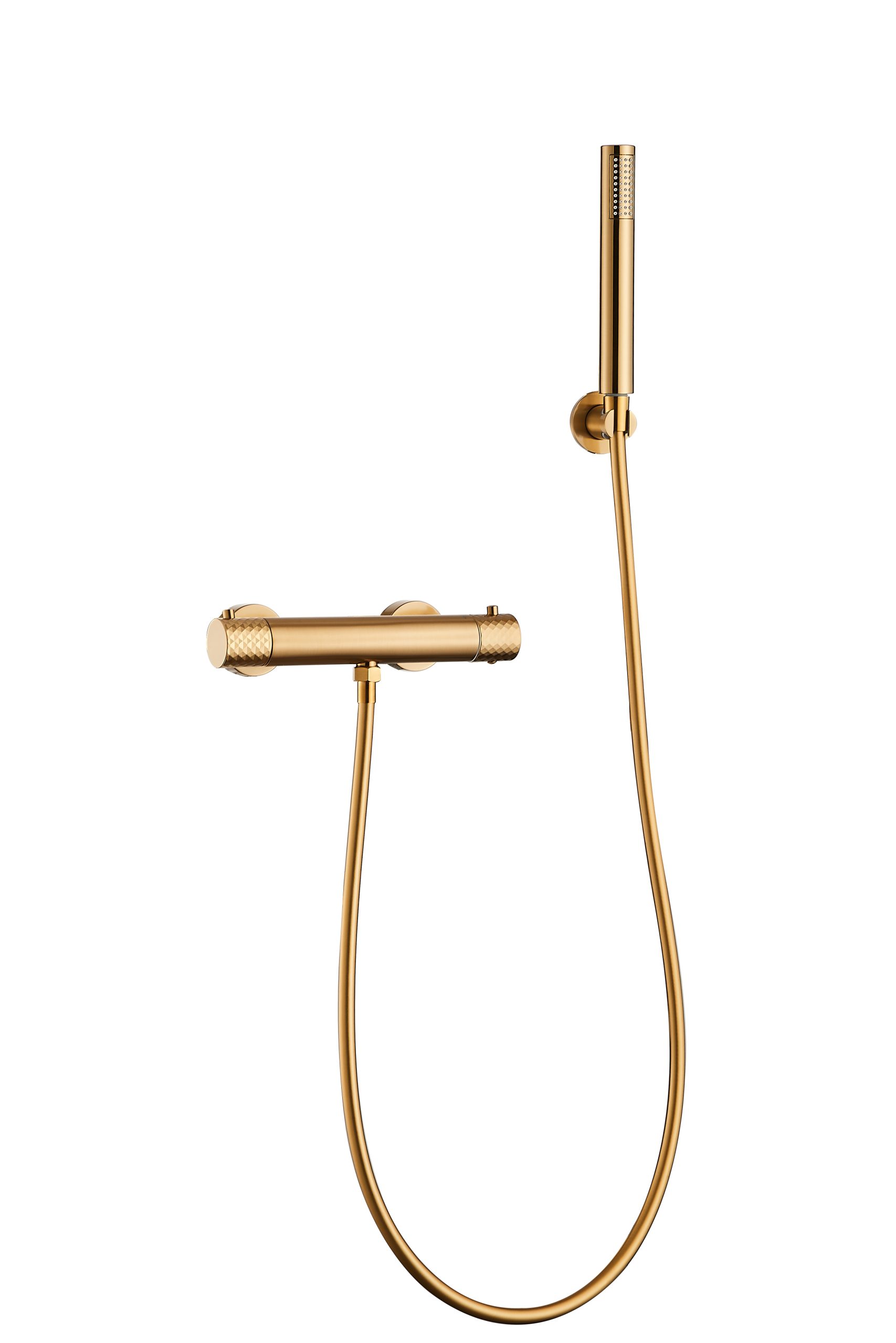 VALAZ Grifo de ducha termostático dorado cepillado maneta luxury – Serie Birim