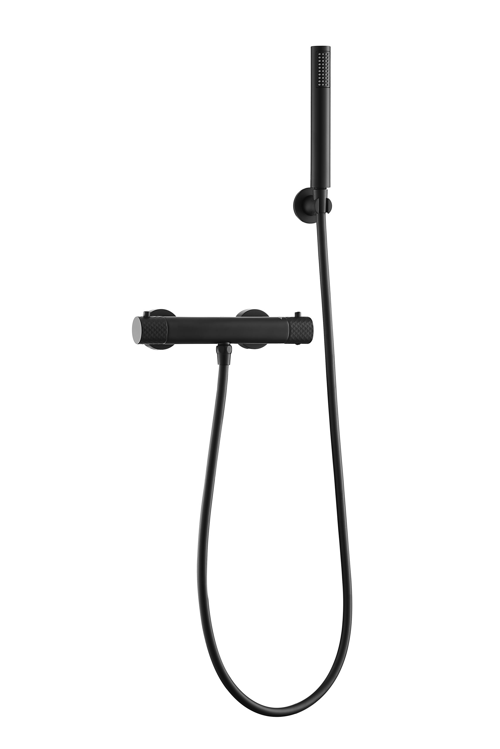 VALAZ Grifo de ducha termostático negro mate maneta luxury – Serie Birim