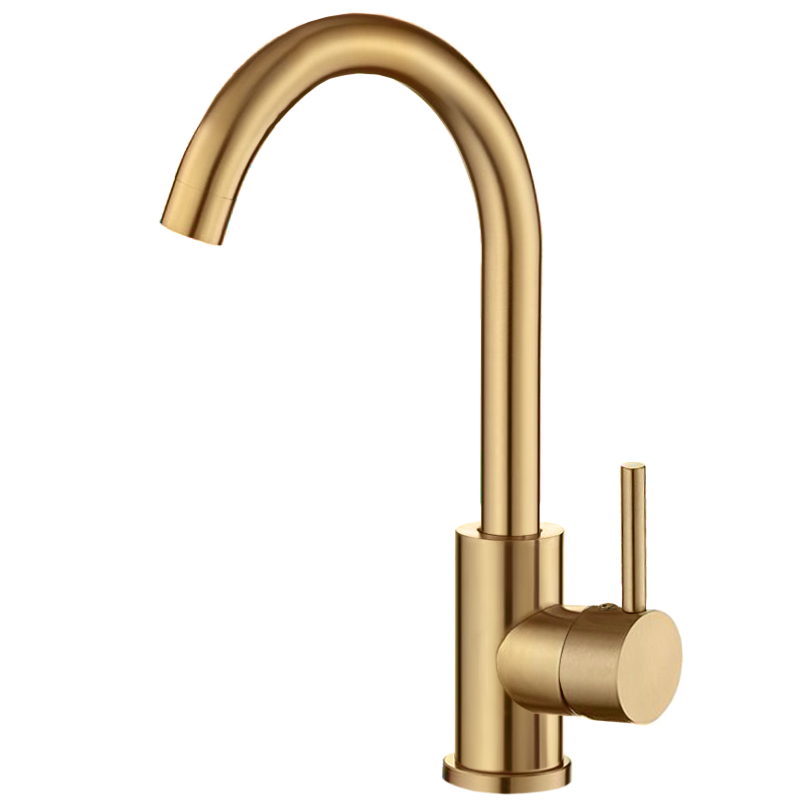 VALAZ Grifo de lavabo monomando con caño corto y giratorio en oro mate con protección PVD - Serie Arkansas