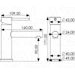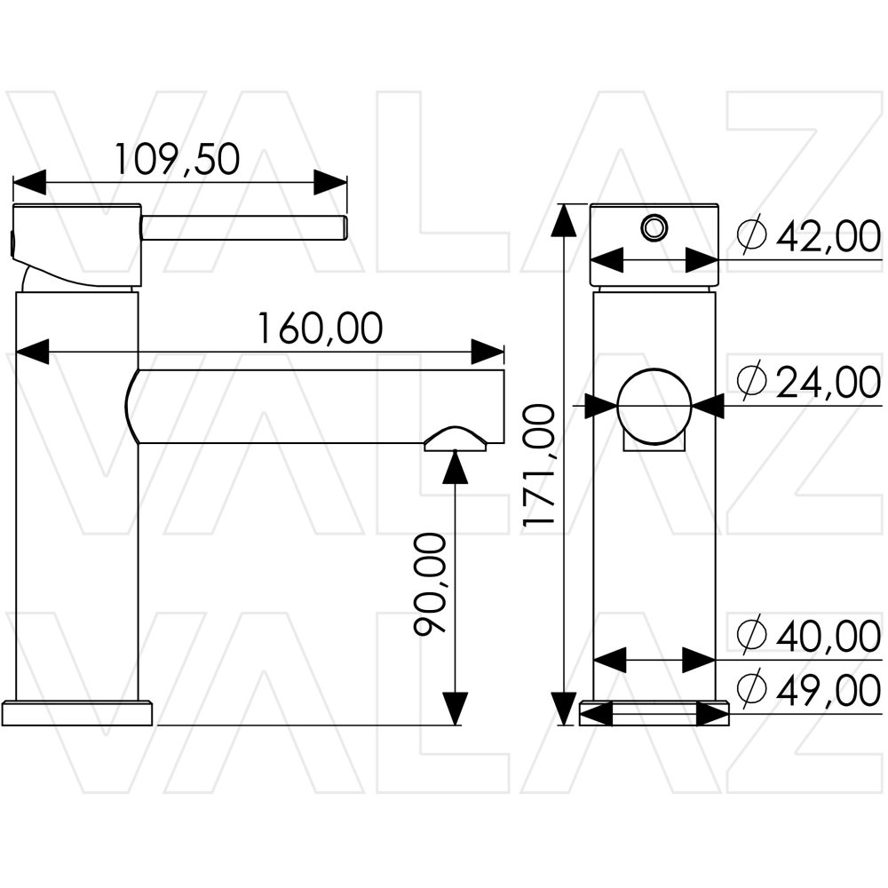 VALAZ Grifo de lavabo con apertura en agua fría monomando caño recto oro mate con protección PVD – Serie Nansa