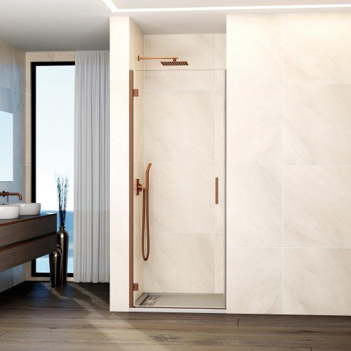 Mampara de ducha 1 puerta abatible bisagras cobre Glass 303,30€ - 396,90€Rango de precios: desde 303,30€ hasta 396,90€