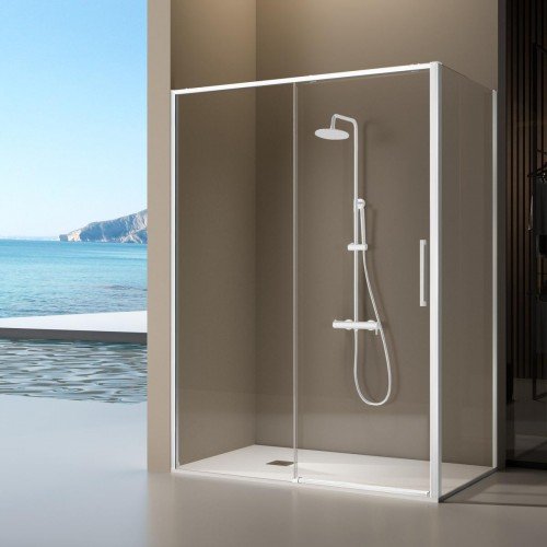 Mampara rectangular blanco mate corredera y lateral fijo Delta 502,80€ - 624,20€Rango de precios: desde 502,80€ hasta 624,20€