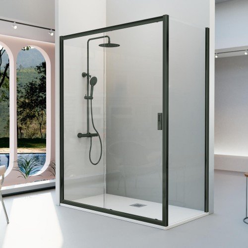 Mampara negra rectangular reducida fijo más puerta corredera Siena 413,67€ - 496,95€Rango de precios: desde 413,67€ hasta 496,95€