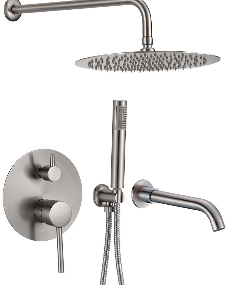 VALAZ Ducha empotrada de bañera a pared acero cepillado - Serie Jucar - 30cm