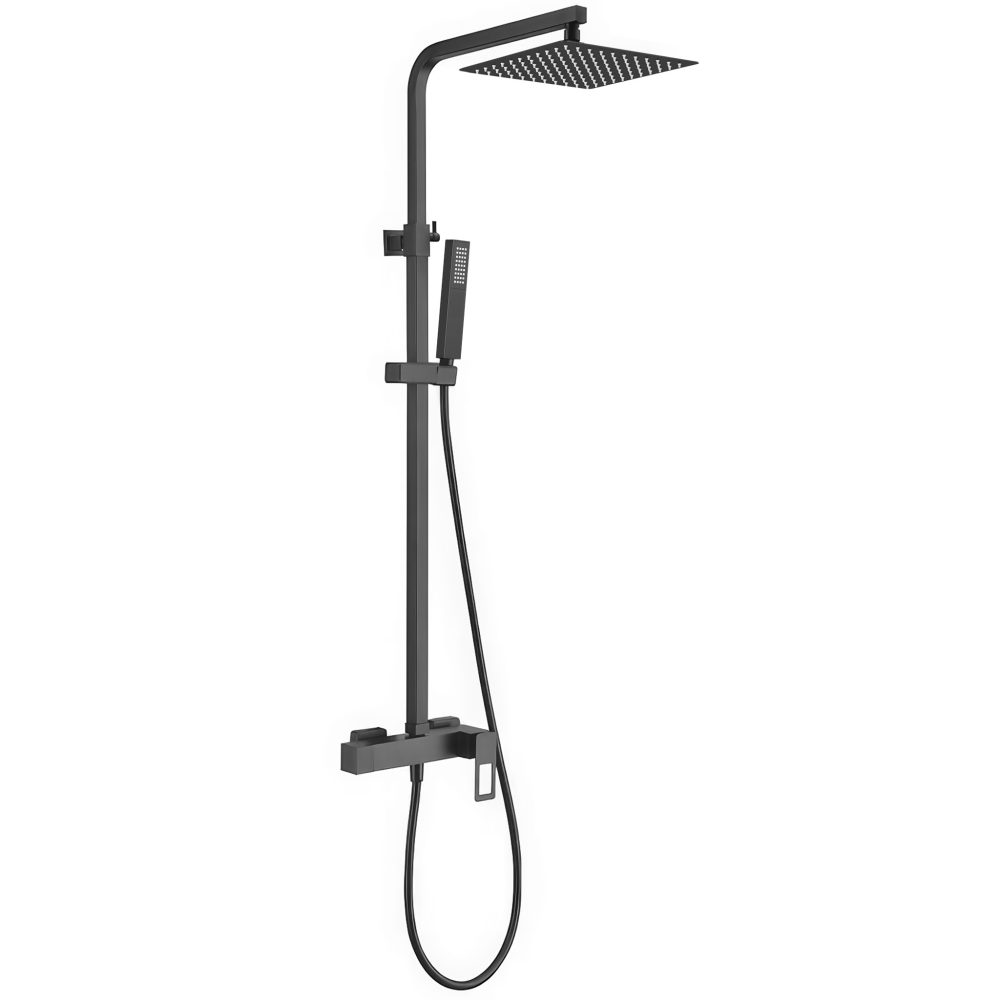 VALAZ Barra de ducha monomando cuadrada ajustable hasta 120CM con maneta hueca negro mate - Serie Cabrera - 20cm