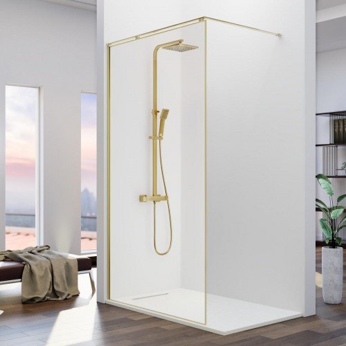 Mampara de ducha fija oro cepillado barra en L Arena 309,71€ - 335,52€Rango de precios: desde 309,71€ hasta 335,52€