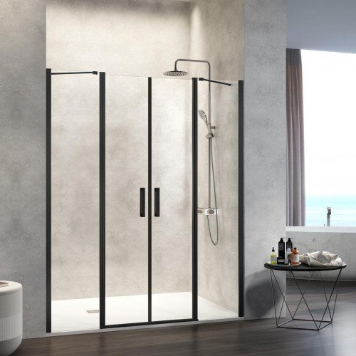 Mampara negra frontal dos fijos y dos abatibles perfil Nardi 637,52€ - 762,88€Rango de precios: desde 637,52€ hasta 762,88€