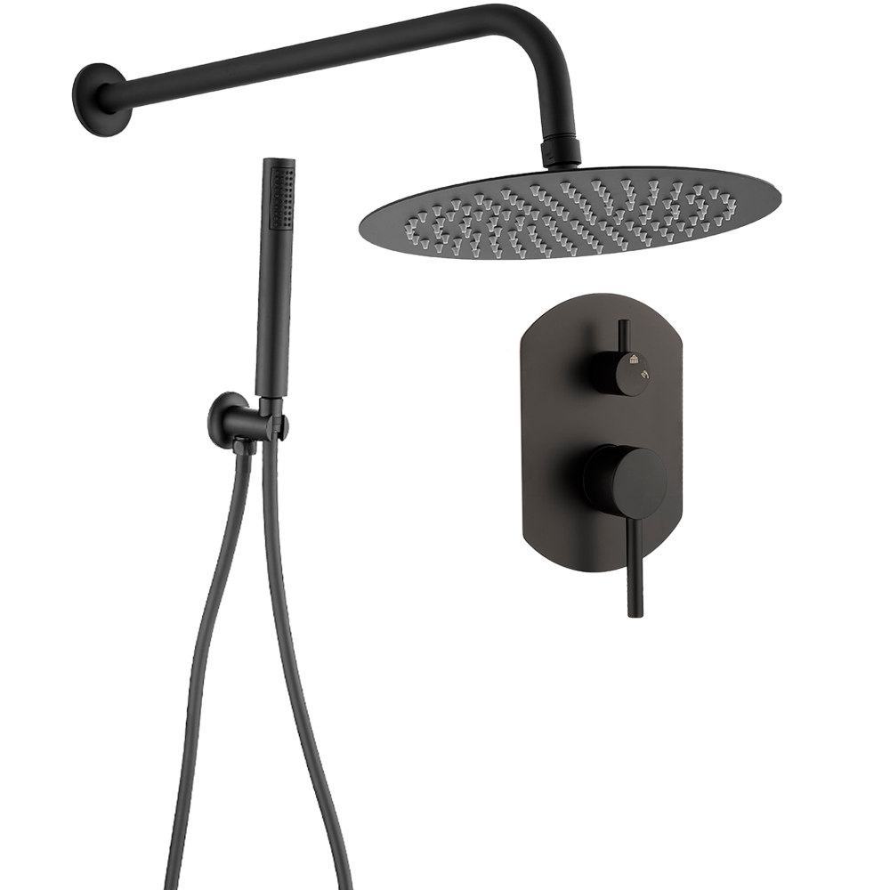 VALAZ Ducha empotrada monomando a pared ovalada redonda negro mate - Serie Duero - 20cm