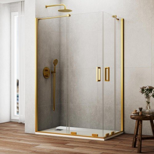 Mampara oro cepillado angular corredera Kenna 732,96€ - 819,95€Rango de precios: desde 732,96€ hasta 819,95€