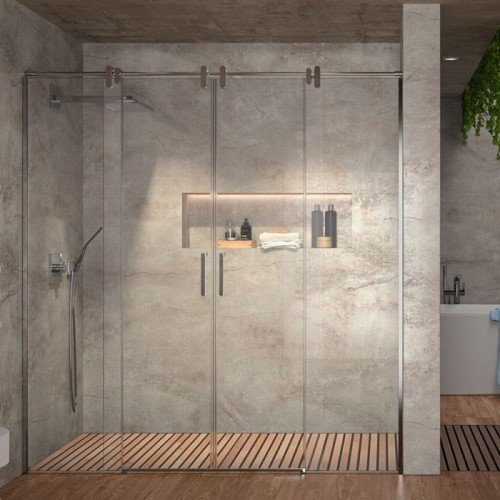Mampara 2 fijos y 2 correderas acero inoxidable Slim