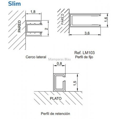 Los perfiles verticales de la mampara de ducha permiten el ajuste de la mampara y hacen que podamos adaptarla correctamente a las condiciones de la obra, salvando los posibles desniveles que puedan existir en las paredes y ajustándose al hueco de luz necesario.