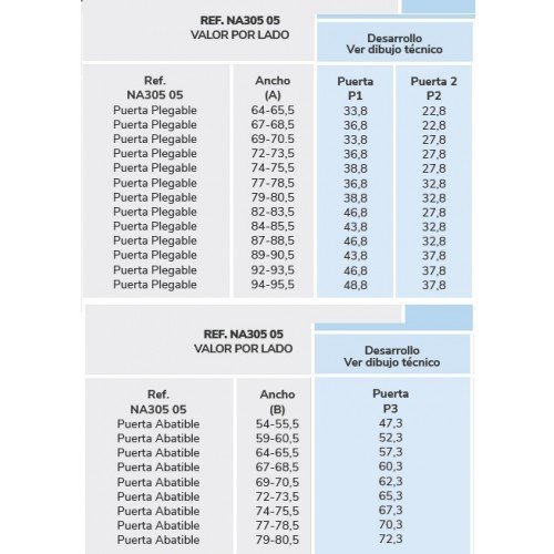 | Medidas lado plegable | , , , , , , , , , , , , |