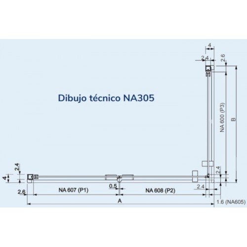 Mampara angular 1 lado plegable 1 lado abatible Nardi