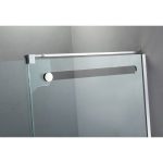 Mampara de ducha angular con dos fijos y dos puertas correderas, entrada por el vértice, modelo Vetrum, esta mampara la podemos considerar como la mampara de más alta gama, y con el diseño mas espectacular del mercado, hace un efecto de todo vidrio, sin prácticamente ningún perfil, los rodamientos corren por dentro del vidrio y por el vierteaguas de acero del suelo, y con vidrios de 10 mm en los fijos y 8 mm la corredera, es realmente increíble.