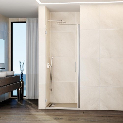 Mampara de ducha con bisagras a pared, ideal para quienes buscan un diseño elegante y funcional, con perfil en cromo.
