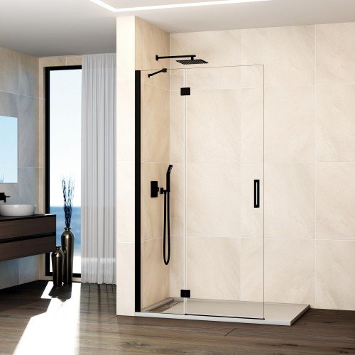 Mampara de ducha negra 1 fijo más 1 abatible sin cierre Glass 297,90€ - 406,80€Rango de precios: desde 297,90€ hasta 406,80€