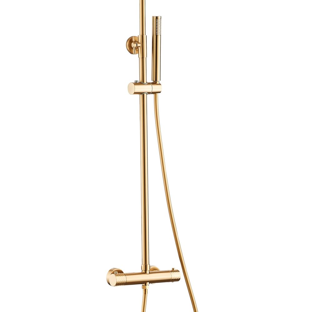 VALAZ Barra de ducha termostática redonda dorado cepillado Serie Birim - 20cm