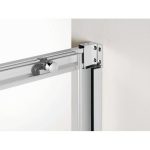 Los perfiles verticales de la mampara de ducha permiten el ajuste de la mampara y hacen que podamos adaptarla correctamente a las condiciones de la obra, salvando los posibles desniveles que puedan existir en las paredes y ajustándose al hueco de luz necesario. En concreto el ancho de la perfilería del modelo Temple es de 2,3 cm los cuales nos permitirán salvar los descuadres que puedan haber en las paredes de nuestro plato de ducha.