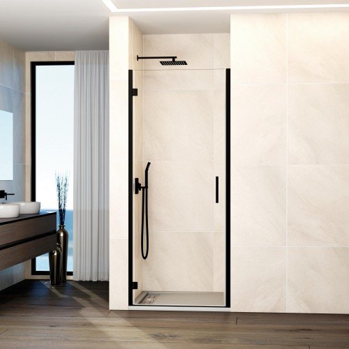 Mampara de ducha 1 puerta abatible negro mate bisagras Glass