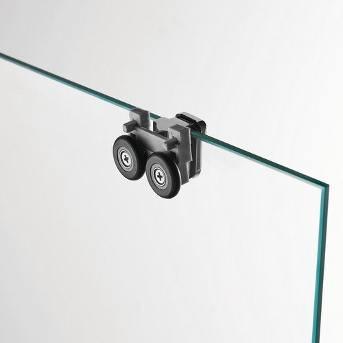 El sistema de apertura es mediante hojas correderas, las cuales llevan rodamientos que se deslizan por la guía superior. Sistema de doble polea suspendida silenciosa, 8 ruedas por puerta y 12 en medidas superiores a 140 cm. La perfilería permite una compensación de 3 cm. los cuales nos permitirán salvar los descuadres que puedan haber en las paredes de nuestro plato de ducha.