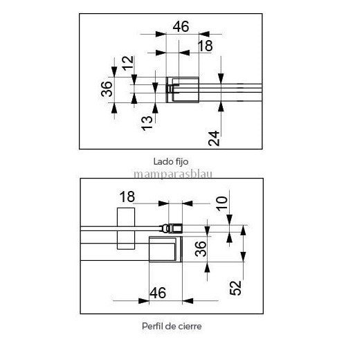 Mampara rectangular negra fijo y corredera + lateral fijo Bella