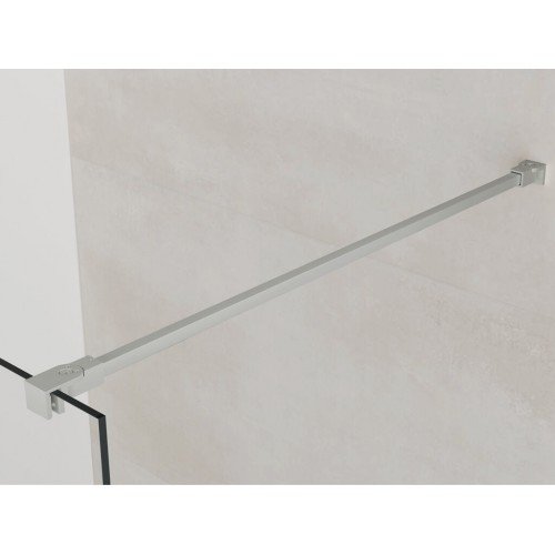 Mampara de ducha de una hoja fija modelo Screen en níquel cepillado, compuesta de un fijo de 8 mm, en este caso podemos elegir varios anchos tanto del fijo, el brazo es orientable (se puede poner por ejemplo a 45 grados) va de 60 a 120 cm.