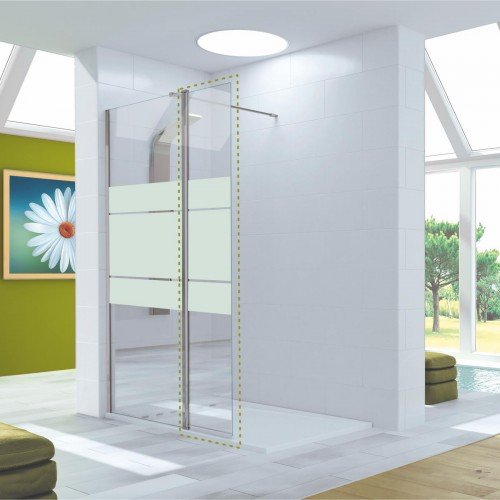 La mampara de ducha una hoja fija más una hoja abatible, modelo Visión en color plata brillo, esta mampara combina un fijo de varias medidas con una hoja abatible de 40 cm, que abre hacia dentro y hacia fuera (180 grados).