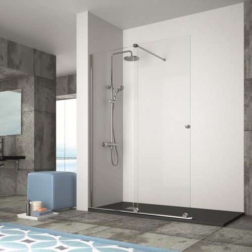 La mampara de ducha fija Levante, modelo FL633, es un modelo con un vidrio de seguridad de 8 mm con anti-cal, un perfil minimalista de aluminio de alta resistencia en color negro mate.