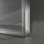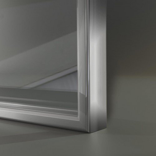 Esta mampara tiene un cerco perimetral de aluminio de tan solo 0,4 cm en acabado aluminio plata brillo, lo que le da un que moderno y sofisticado, alineado con las nuevas tendencias de mercado. El perfil de color plata brillante le otorga un toque de sofisticación y modernidad al baño, adaptándose a diversos estilos de decoración. Su altura de dos metros proporciona una cobertura amplia, ideal para duchas espaciosas, asegurando una protección efectiva contra salpicaduras de agua.