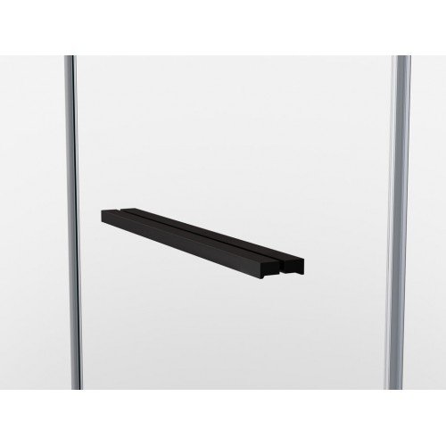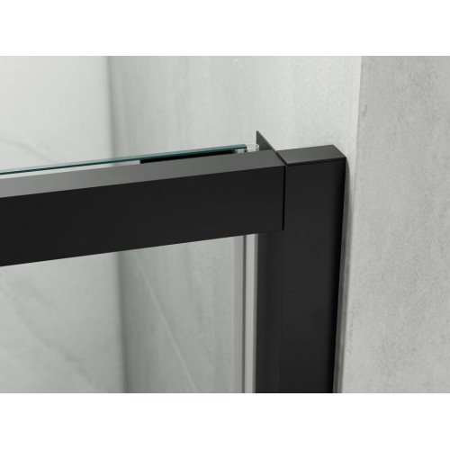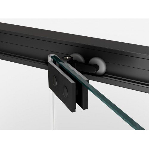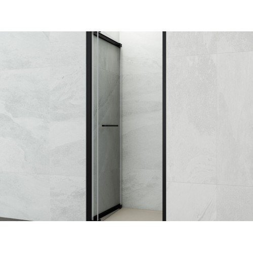 Mampara de ducha frontal para espacios reducidos fabricada en aluminio en negro mate, con cristales templados de 6mm. Sus rodamientos orientables permiten una apertura completa de la puerta deslizando por el rail lateral. Disponible en plata brillo. Entrega inmediata.