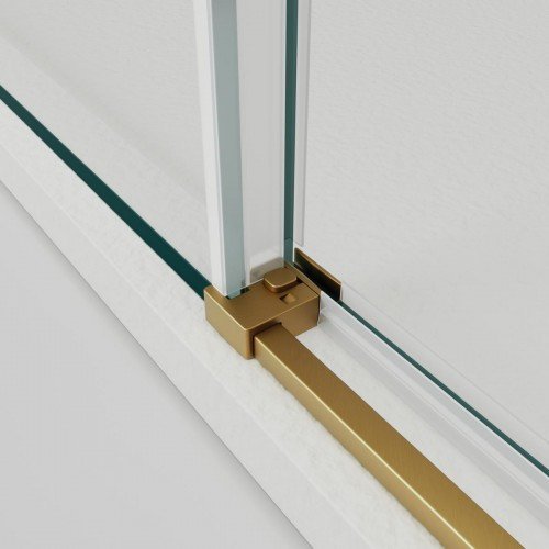 Mampara de ducha rectangular, formada por un fijo y una corredera más un lateral fijo. Modelo Twenty Gold rectangular, está fabricada con una perfilería en aluminio de tan solo 20 mm en oro cepillado y ausencia de perfilería inferior, lo cual, le otorga una gran belleza minimalista a su diseño. Tiene un diseño increíble, es una de las mamparas con mejor diseño y calidad del mercado, y la única que incorpora el cierre amortiguado.