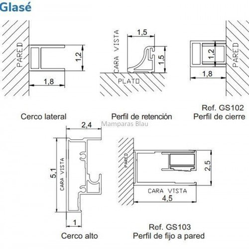 La mampara de ducha carece de guía en la zona inferior de la mampara, así que para proporcionar una buena estanqueidad, deberemos instalar una goma vierteaguas en la parte baja de la corredera y un vierteaguas sobre el plato de ducha ya incluidas.
