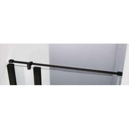 Mampara de ducha frontal con 1 hoja fija y 1 puerta abatible en negro mate, modelo Open Black D, es una mampara que lleva un brazo paralelo entre paredes negro mate hasta 140 cm, que sustituye al brazo a 45 grados, el abatible con el perfil provisto de un sistema de elevación al girar la hoja abatible, integrado en el perfil vertical, mediante el cual la puerta se eleva conforme la abrimos.