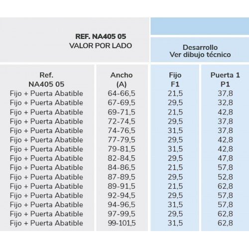 Tenemos varias combinación de medidas por ambos lados, para crear el ángulo.