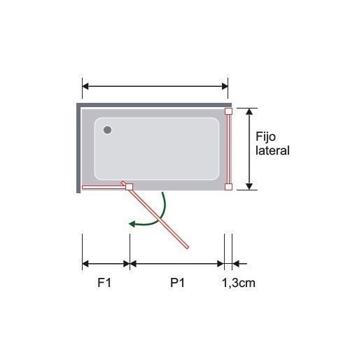 Importante: cuando el frente de ducha va Antes de realizar su pedido, tengan en cuenta Ejemplo: medida total del frente (hueco) 88cm, Pedir el frente de la mampara de 87 cm Ref. PV503 77-87.
