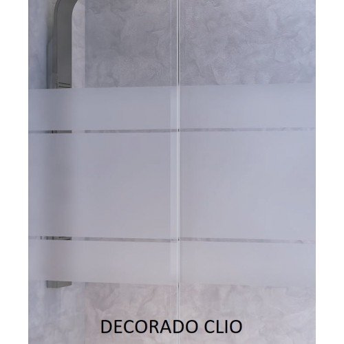 Es posible adquirirlo la mampara con vidrio transparente o con serigrafia decorado clio (tres rayas en el centro de la mampara).