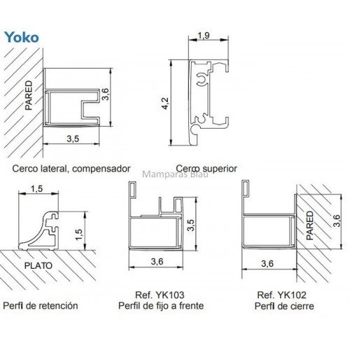 La mampara de ducha rectangular fijo y corredera más lateral fijo, modelo Yoko, es una mampara sencilla, de líneas tranquilas, pero es una top ventas por el precio y el resultado que ha dado a lo largo de los años, con una gran resistencia al agua, es un modelo de mampara de ducha va sin perfil inferior, el cual los sustituye una goma estanca junto con un vierteaguas de aluminio, que se coloca en el plato de ducha.